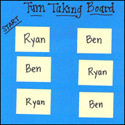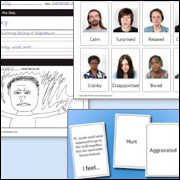 Use characters customized for each child to teach listening, taking turns, staying on subject, and empathy. |