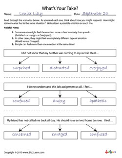 When given a scenario, how might students’ emotional responses differ? Use the “What’s Your Take?” worksheet to explore this idea. Overview: