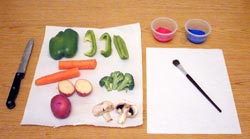 of the vegetable or dip the vegetables in the paint. Use the vegetables