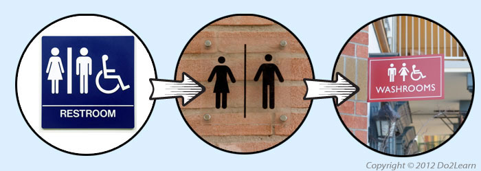 As another example, if a student will only identify one particular representation of a “restroom” icon and does not recognize other “restroom” icons that vary in color, shape, or form, then the student has not generalized the representation of “restroom.” He might not be able to locate a restroom in a vocational or community setting unless the environmental print looks exactly the same as the one he was taught to label in the classroom.