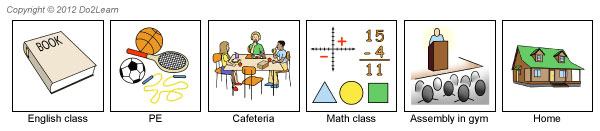 An individually designed schedule must show a sequence of places to go so that the student is independently mobile within and between settings. Providing a means for the student to identify where to be and where to go next is crucial. Many students also benefit when provided with the knowledge of when they are able to engage in a preferred activity, a component easily integrated within the schedule. The schedule helps the student predict the sequence of places (and activities) within the day. ![]() |