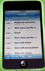 For some individuals , it may be appropriate to have their schedule presented on a cellular phone or device, such as an iPhone, Blackberry, an iPad, or other portable electronic device. Using technology can come across as less stigmatizing and more motivating. Frequently, electronics are inherently motivating to the individual and they are appreciated by peers. In other cases, using an appointment book or a daily calendar may fit the individual.- Consider the portability and location of the schedule. Some individuals remain in the same general location while working. These individuals will likely prefer to keep their schedule in the same place all the time, returning to their schedule after the completion of a task to check what is next. Other individuals may move around to different locations during the school or work day. In such instances, the individual will need to carry their schedule with them from location to location. The instructor should carefully consider the environmental design of those spaces to support the student in keeping up with his schedule. Remember, to promote attention and stamina, and to reduce anxiety, the individual needs to be able to see their schedule at any point across the work or school day.