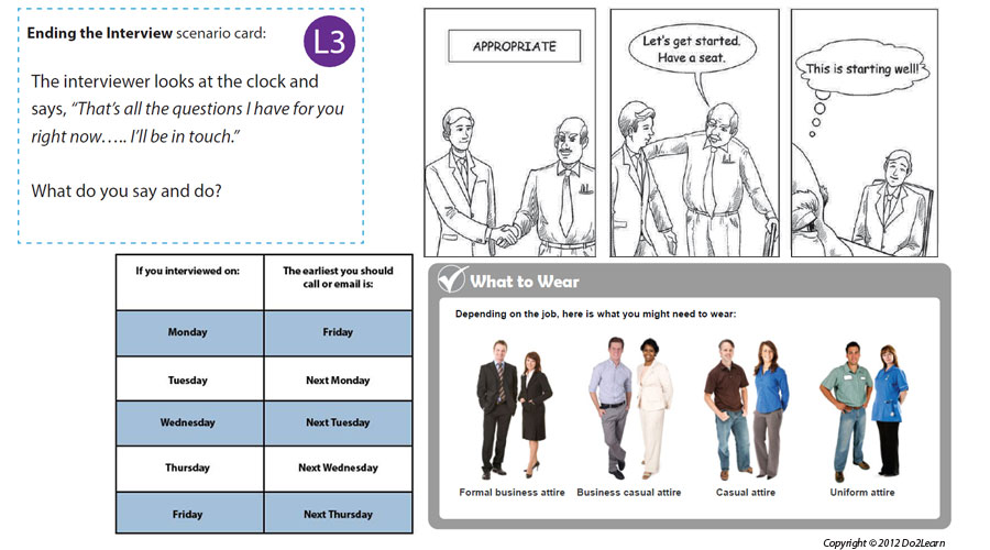 This section provides resources to help students know how to dress, how to act, and what to say at all stages of the interview process. Students will feel more confident when they are well-prepared before an interview, so this section will help them organize their time and their thoughts, and to practice answering even the toughest questions. They can then feel confident that they’ll make a good impression during their interviews.