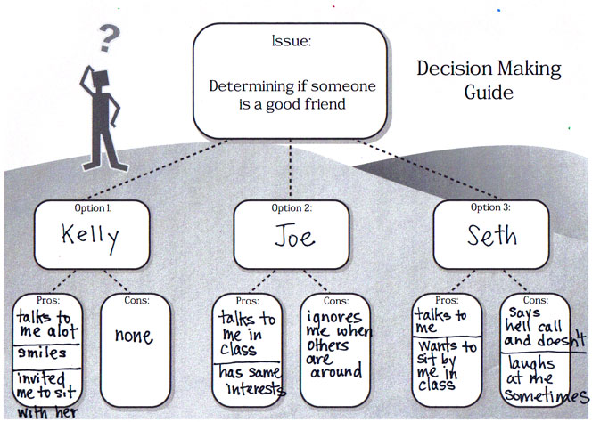 Many people with social issues often want friends but have difficulty making them or keeping them. Sometimes, they may misinterpret someone’s initial kindness or attention as “friendship”. Due to the difficulty with reading the intension of others, some people with social issues can be taken advantage of by those that are manipulative and recognize the vulnerability in others. Strategies such as the decision making guide may help people with social issues work through the process of accurately judging the behavior of those they are interacting with and making good decisions about developing relationships with these individuals. |