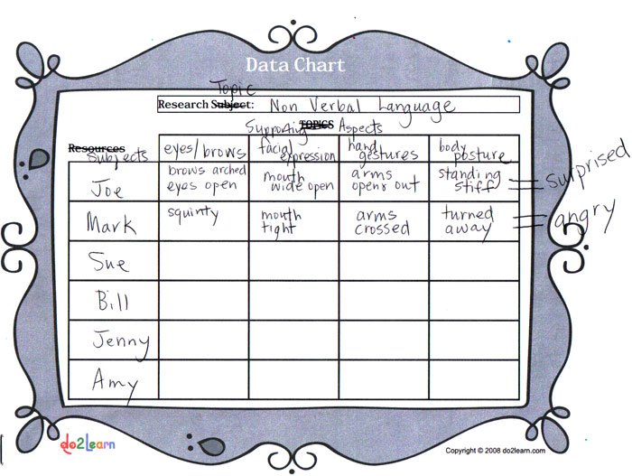 - Give students time to observe each subject and list their observational details in the boxes within the data chart.