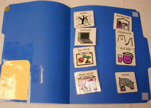 store unused picture cards on this page using strips of velcro or in a ziploc bag attached with velcro